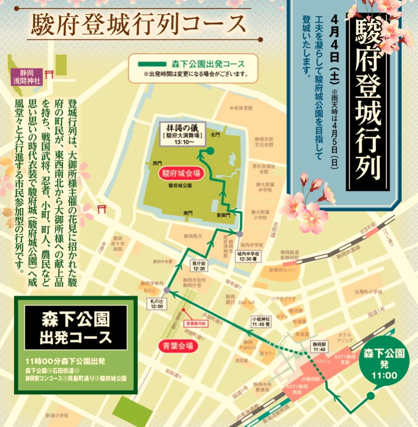 駿府登城行列 『駿府登城行列』 開催日時: 4月4日(土)11:00~ ※雨天時は4月5日(日) Post Share Hatena LINE RSS feedly Pin it note 拝謁の儀 前の記事