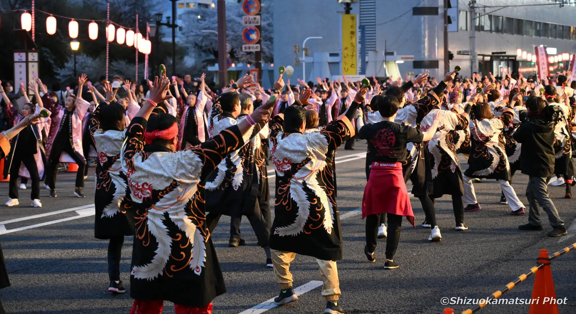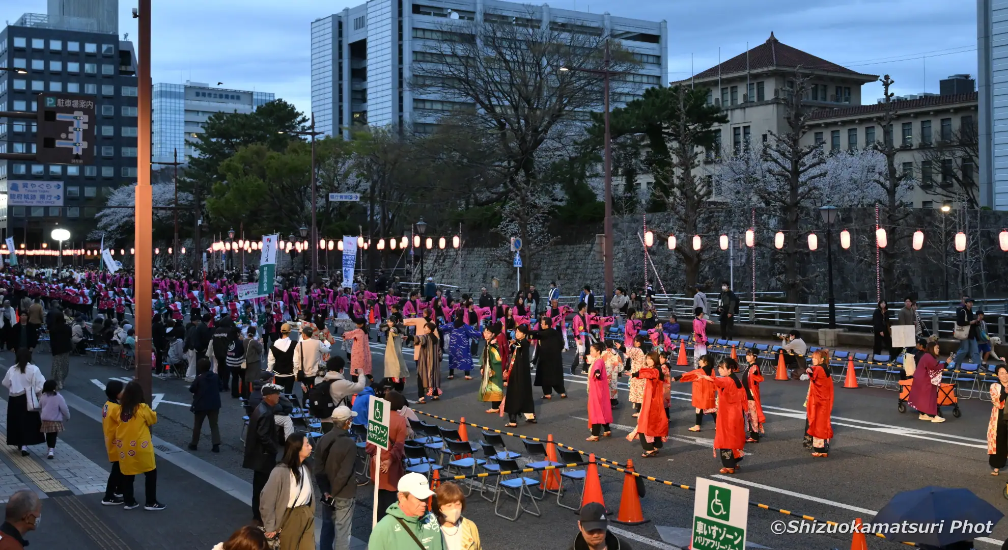 2025 5 Apr 夜桜乱舞 静岡の春、サクラ舞い踊る駿府城下を舞台に繰り広げる市民総踊り「夜桜乱舞」。 多くの参加者が、大御所・徳川家康が開いた花見の宴を盛り上げるため、市役所前の大通りを舞い踊る、市民参加型の踊りです。 そして何より、踊り手ひとりひとりの素敵な笑顔が見ている人達に元気を与えます。この静岡の地に根差したまつりを目指し、静岡の文化の継承、人と人とのつながりを大切にします。 ちゃっきり鳴子を手に全5曲を追手町会場で踊りあかします。 Post Share Hatena Pocket RSS feedly Pin it Copyright © 第69回写真集 All Rights Reserved.